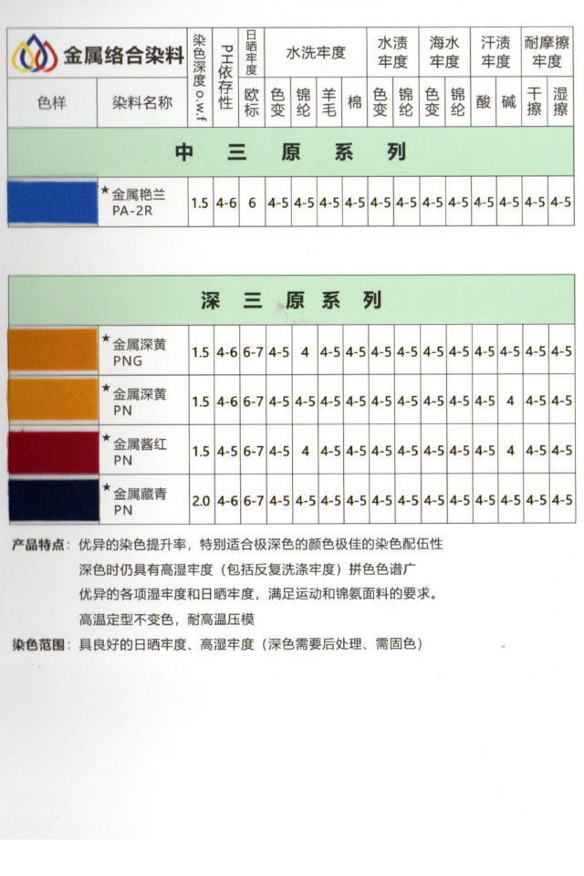 高牢度分散染料作為合成纖維染色的核心材料,以分子結構小、不含水溶性基團為特征,需借助分散劑實現均勻染色。其技術特性聚焦于色牢度提升,涵蓋耐洗、耐光、耐摩擦、耐升華等多維度性能,采用五級制評級體系(耐光牢度為八級),級數越高代表性能越優。例如,蒽醌結構染料因分子穩定性高,耐曬、耐熱性能顯著;偶氮…